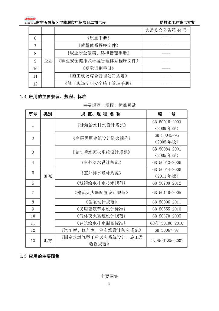 南宁五象新区宝能城市广场项目二期工程给排水工程施工方案.pdf