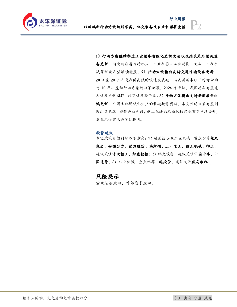 太平洋证券:机械行业周报:以旧换新行动方案细则落实,轨交装备及农业机械将受益.pdf