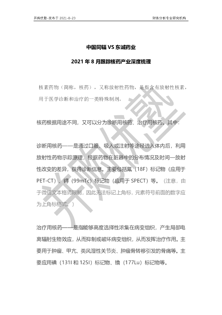并购优塾:2021年8月跟踪核药产业深度梳理——中国同辐VS东诚药业.pdf