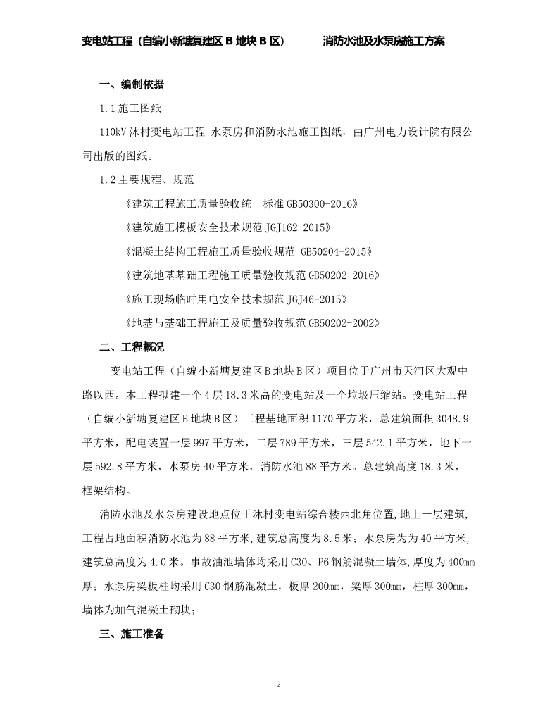 110kV变电站消防水池及泵房专项施工方案.doc
