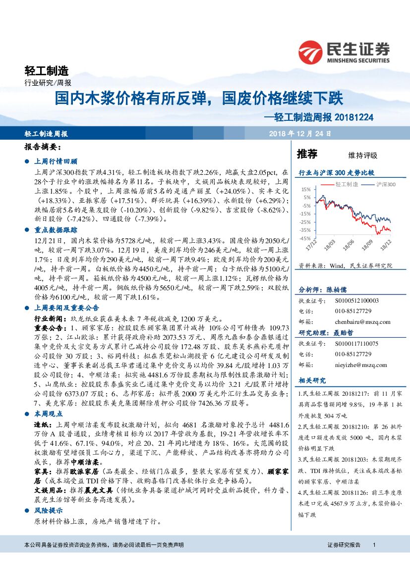 民生证券:轻工制造周报:国内木浆价格有所反弹,国废价格继续下跌.pdf