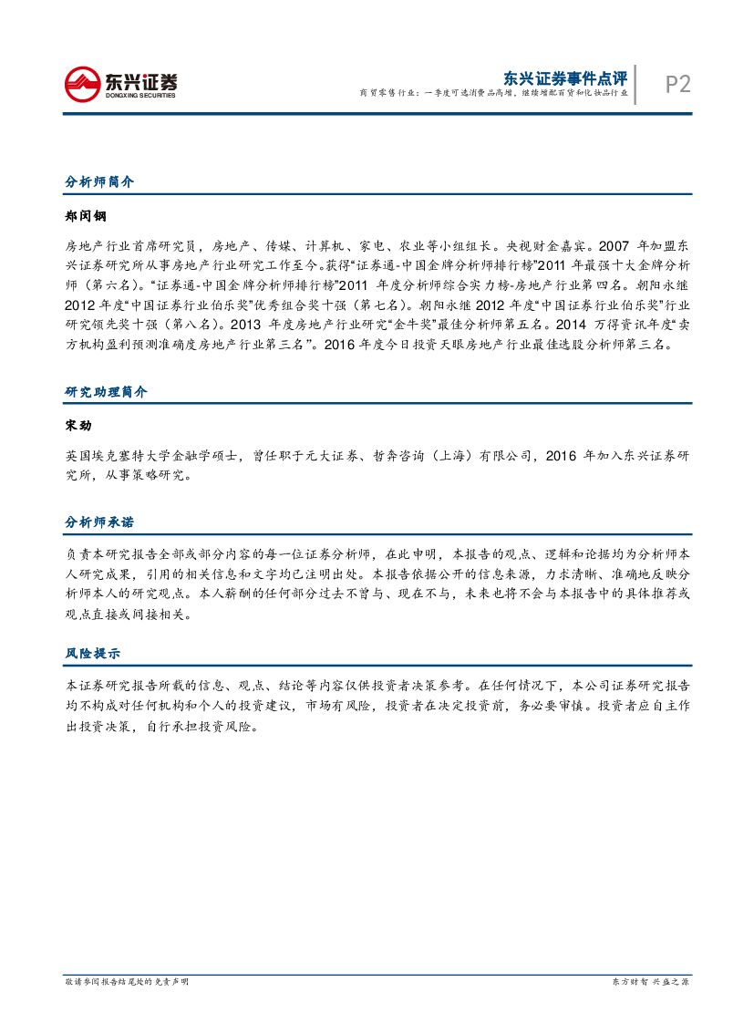 东兴证券:商贸零售行业事件点评:一季度可选消费品高增,继续增配百货和化妆品行业.pdf