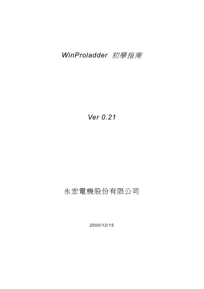 永宏電機股份㈲ 限公司 WinProladder 初㈻指南 Ver 0.21.pdf