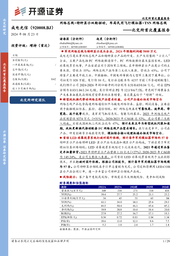 开源证券:成电光信(920008)-北交所首次覆盖报告:网络总线+特种显示双轮驱动,布局民用飞行模拟器+TSN网络总线.pdf