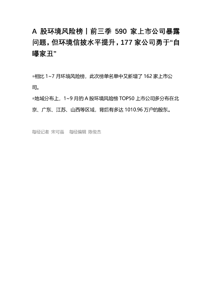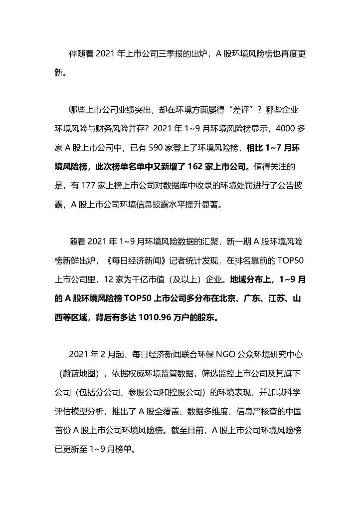 IPE公众环境研究中心:A股环境风险榜丨前三季590家上市公司暴露问题,但环境信披水平提升,177家公司勇于“自曝家丑”.pdf
