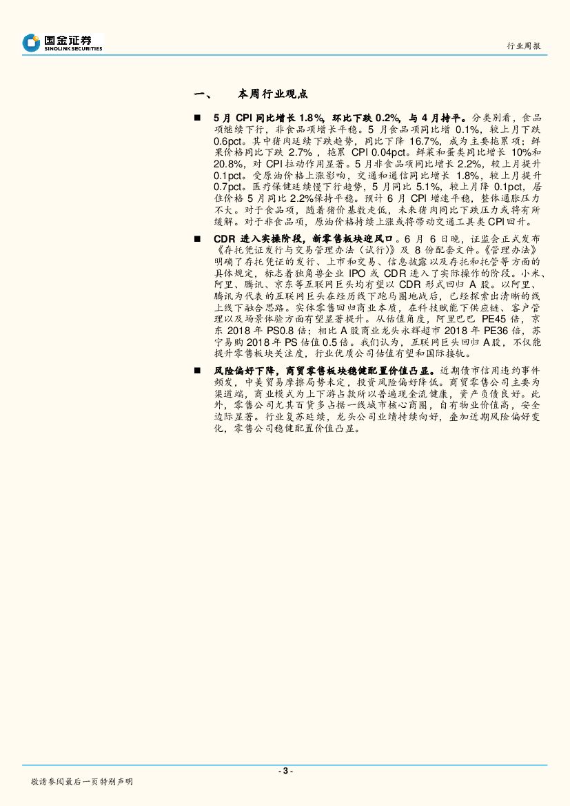 国金证券:批发和零售贸易行业研究周报:5月CPI同比增长1 .8%,CDR进入实操阶段.pdf