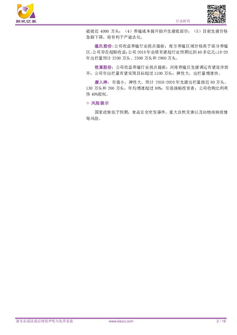 联讯证券:【联讯农业周报】节后猪肉消费淡季,生猪均价继续走低.pdf