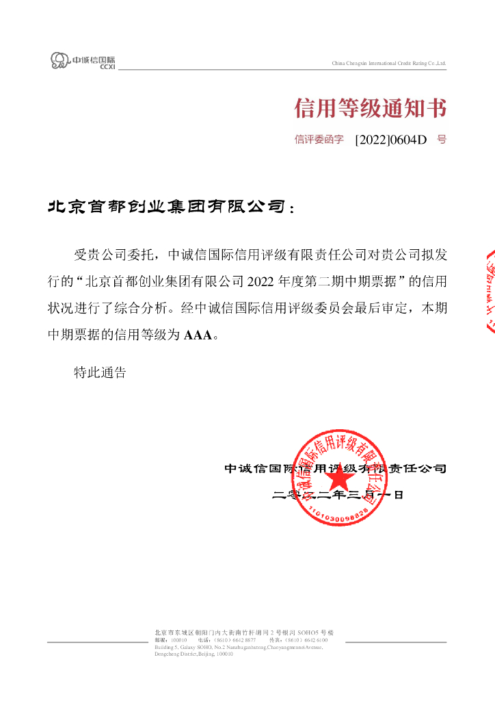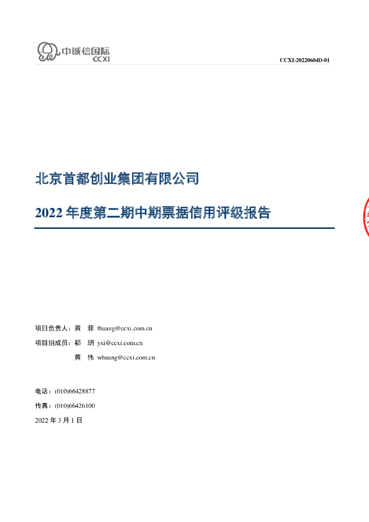 中诚信:北京首都创业集团有限公司2022年度第二期中期票据信用评级报告.pdf