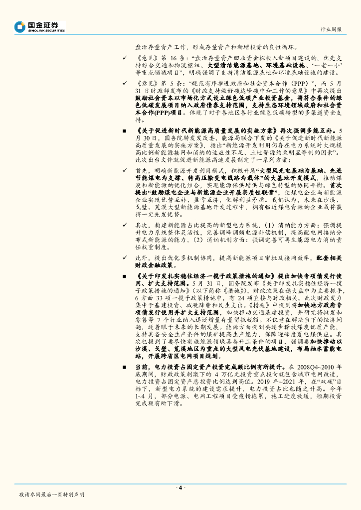 国金证券:公用事业及环保产业行业研究:落地政策频出,电力投资建设可期.pdf
