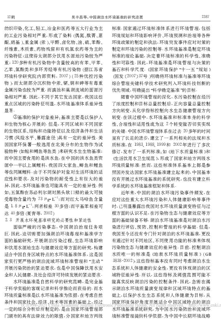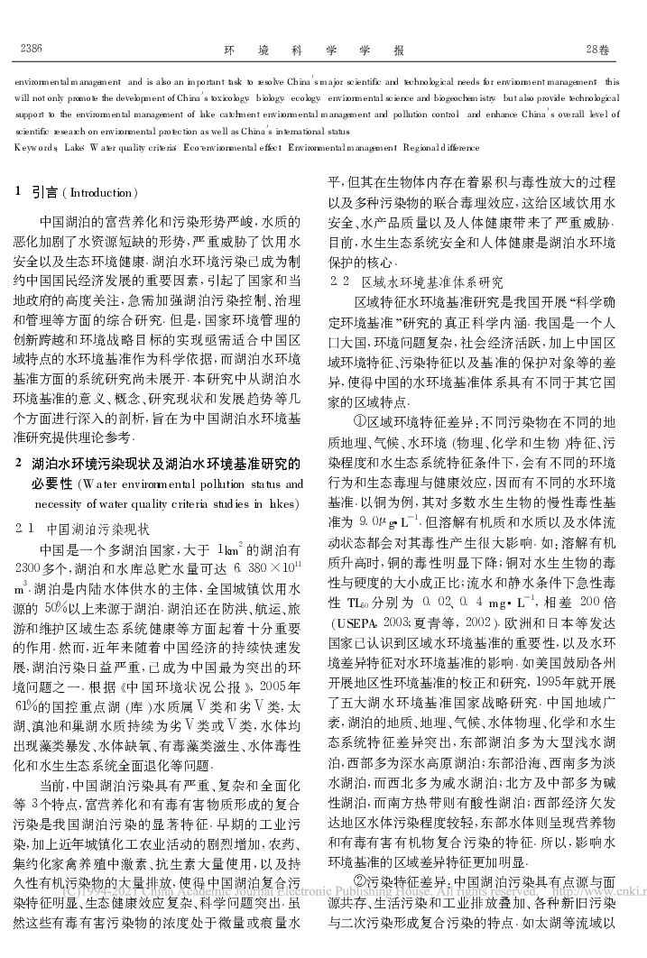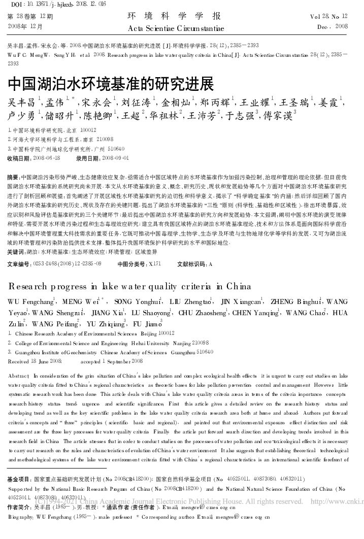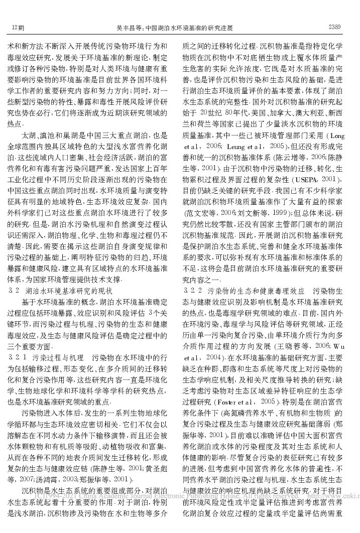 中国环境科学研究院:中国湖泊水环境基准的研究进展.pdf