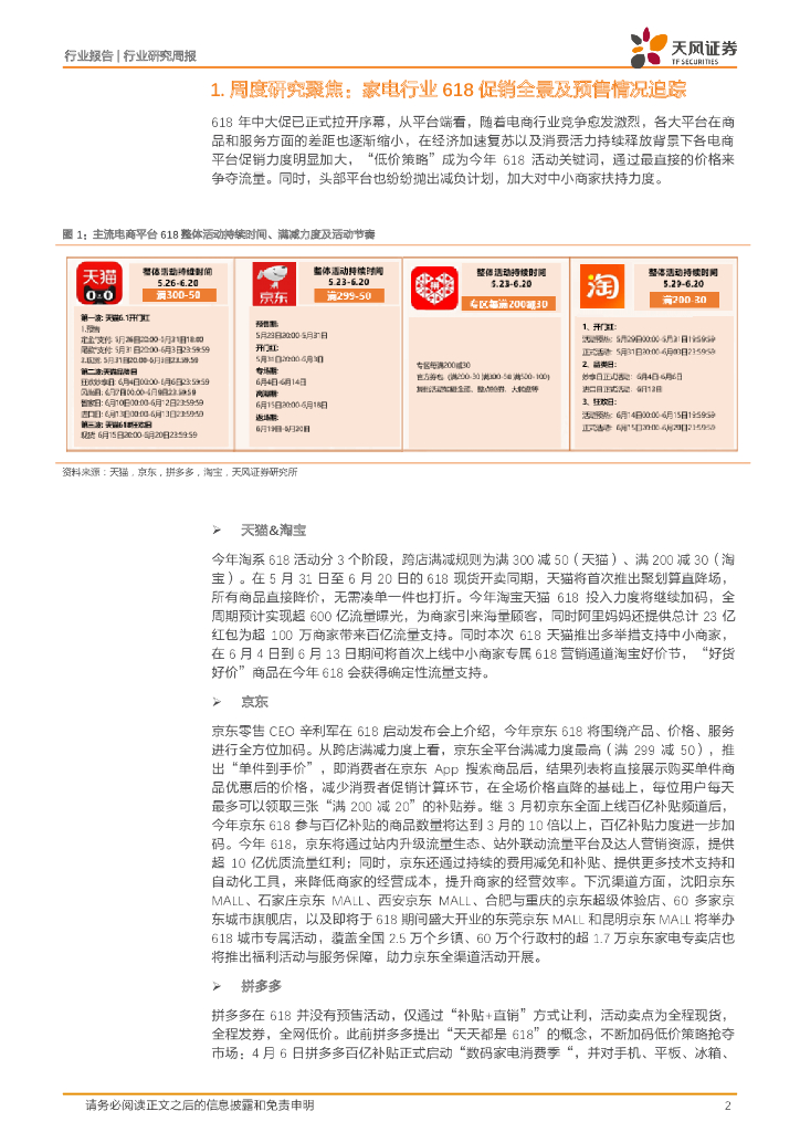 天风证券:家用电器23W22周度研究:家电行业618促销全景及预售情况追踪.pdf