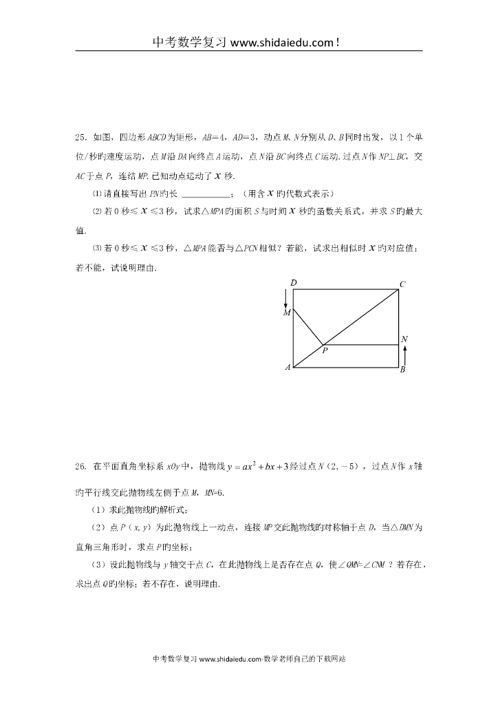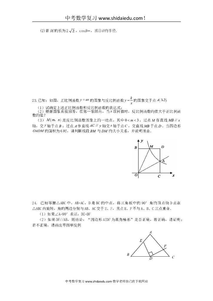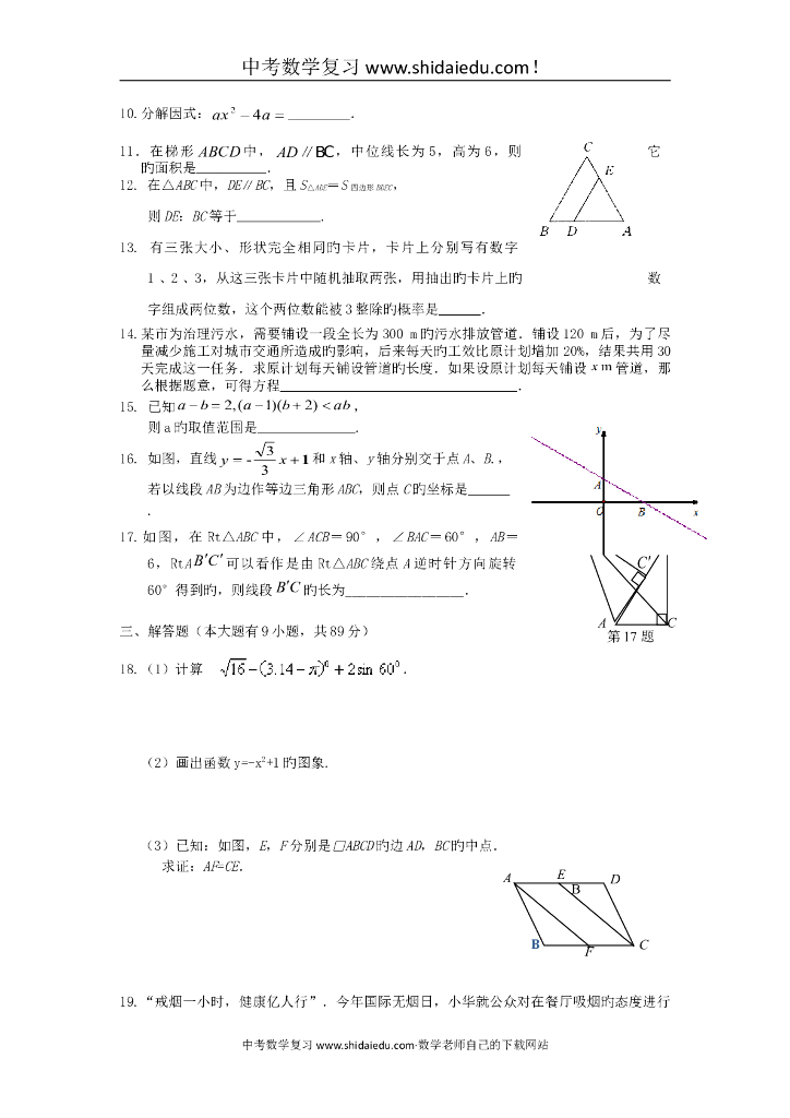 福建厦门外国语学校中考适应性试卷-数学1.doc