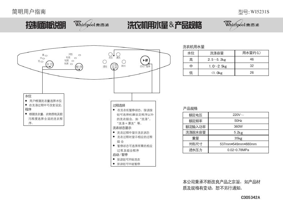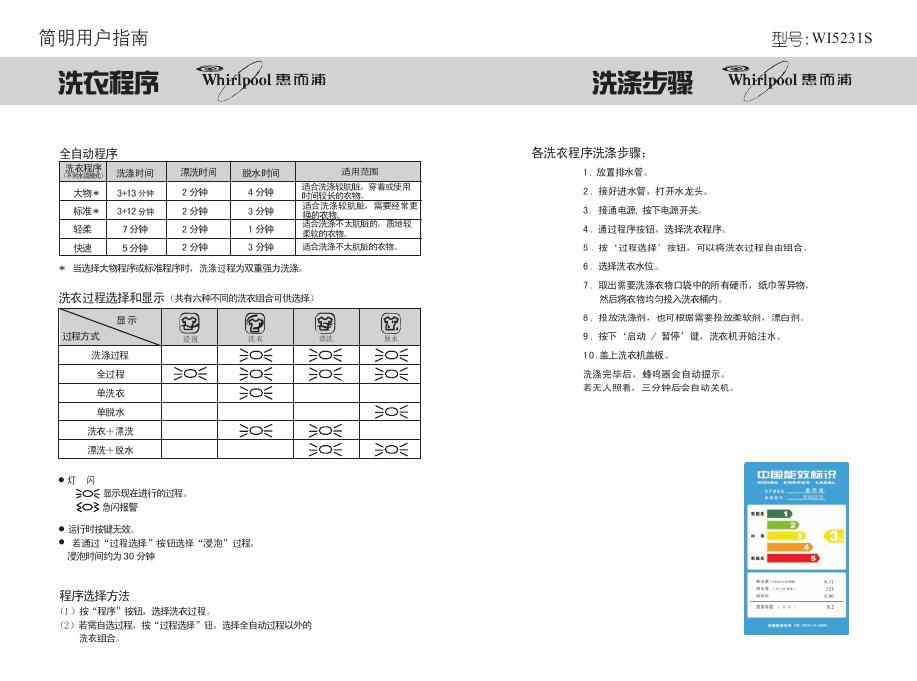 惠而浦 WI5231S洗衣机 用户指南.pdf