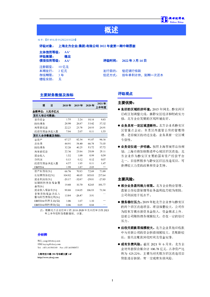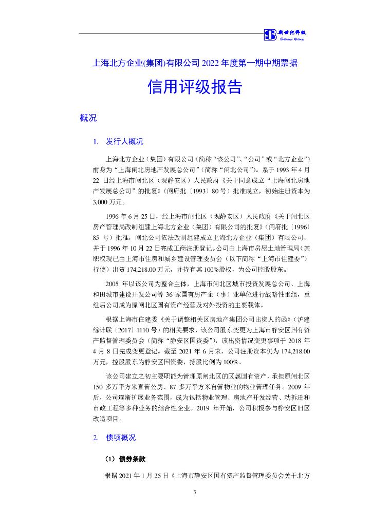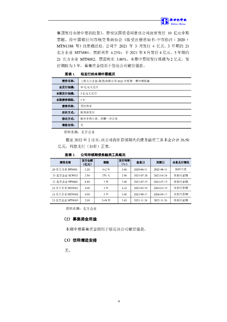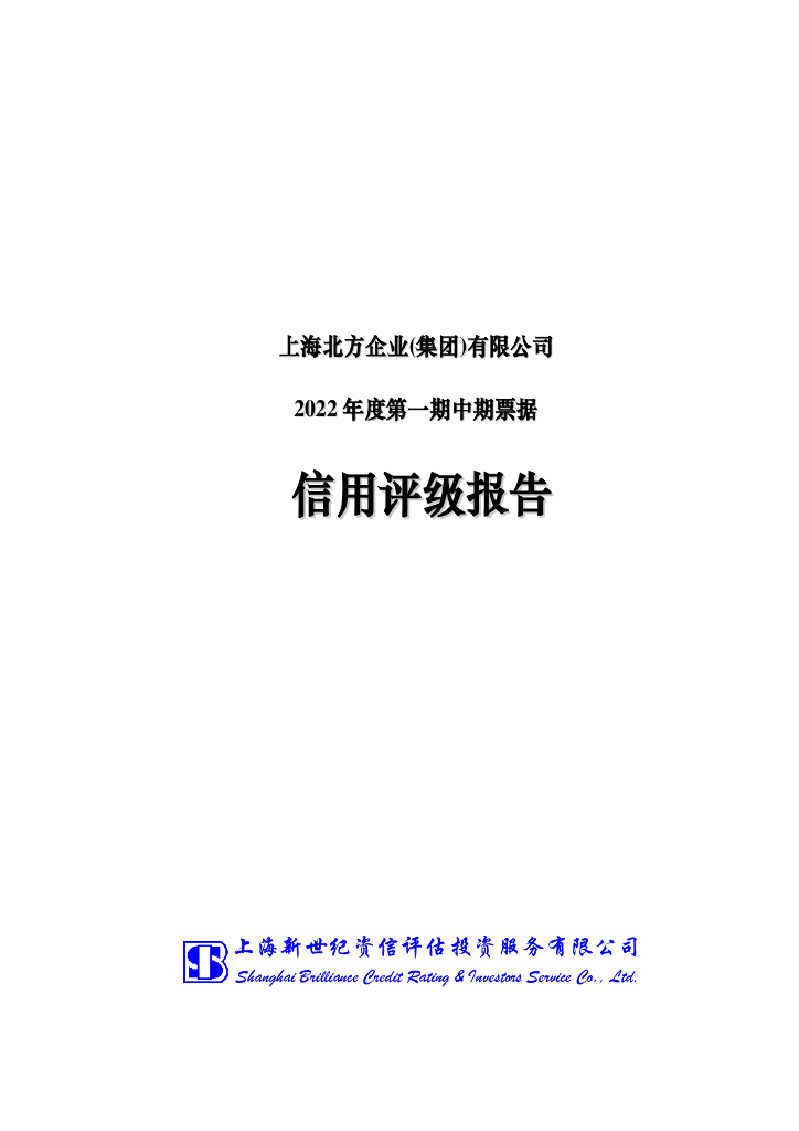 新世纪:上海北方企业(集团)有限公司2022年度第一期中期票据信用评级报告.pdf