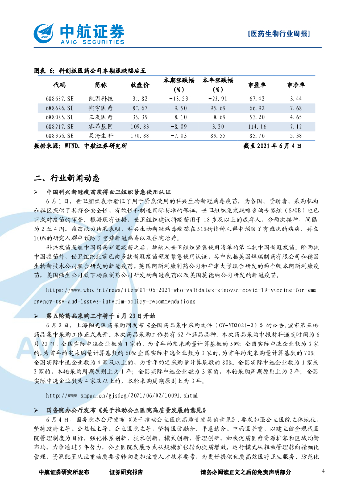 中航证券:医药生物行业周报:第五轮药品集采即将启动,科兴新冠疫苗通过紧急认证.pdf