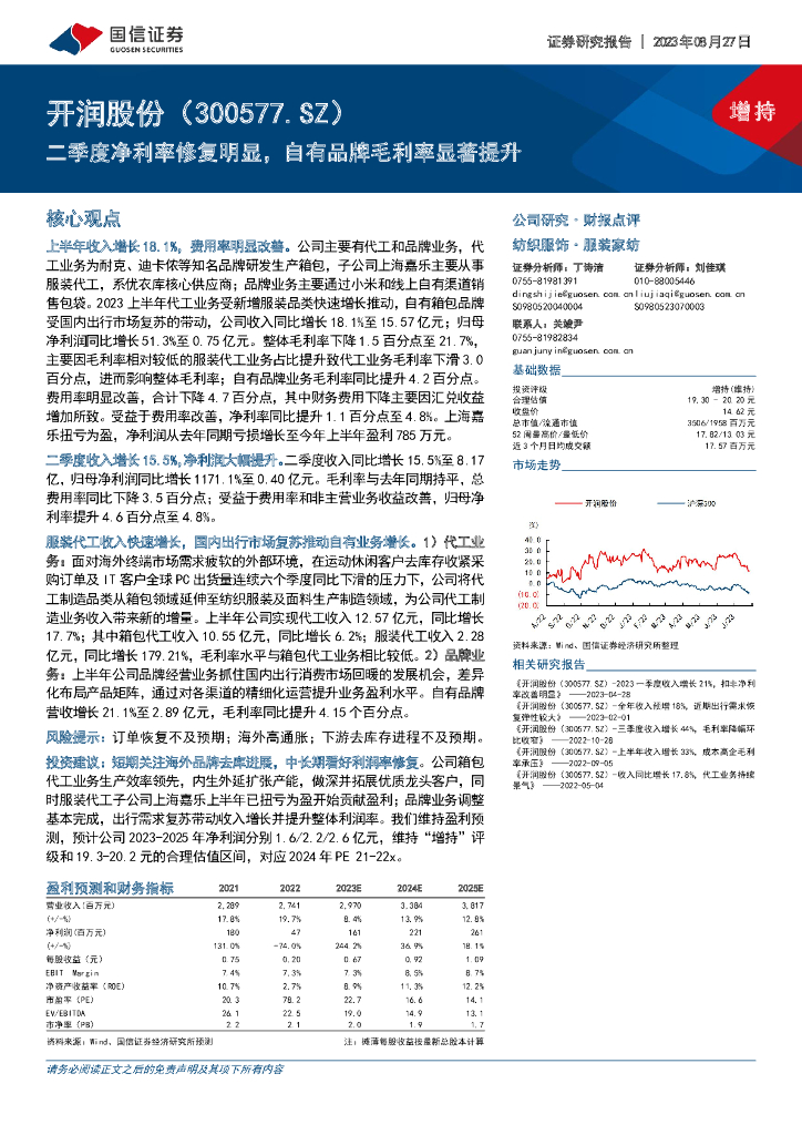 国信证券:开润股份(300577)-二季度净利率修复明显,自有品牌毛利率显著提升.pdf