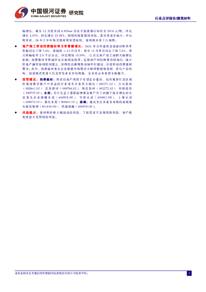 中国银河:2023年1-12月建材行业数据跟踪:基建高增将延续,建材需求有望回暖.pdf