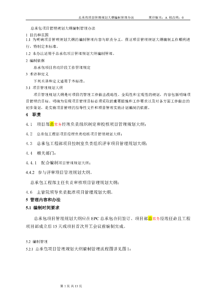 总承包项目管理规划大纲编制管理办法.doc