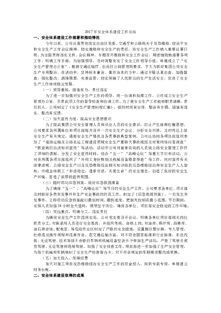 2017年企业安全体系建设工作总结.doc