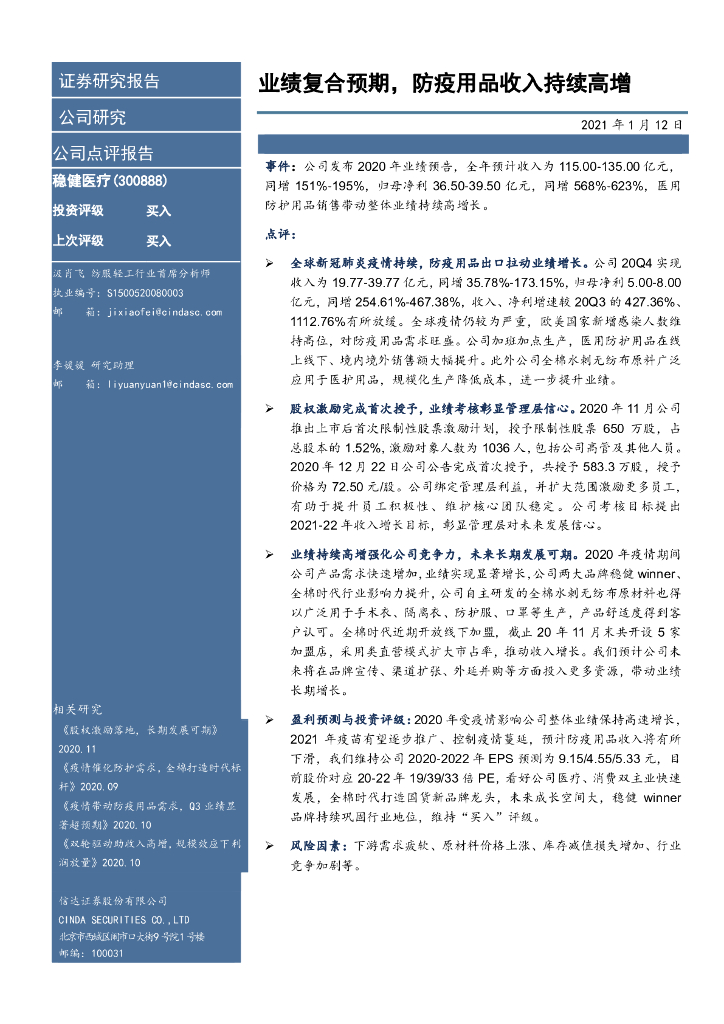 信达证券:稳健医疗(300888)-业绩复合预期,防疫用品收入持续高增.pdf
