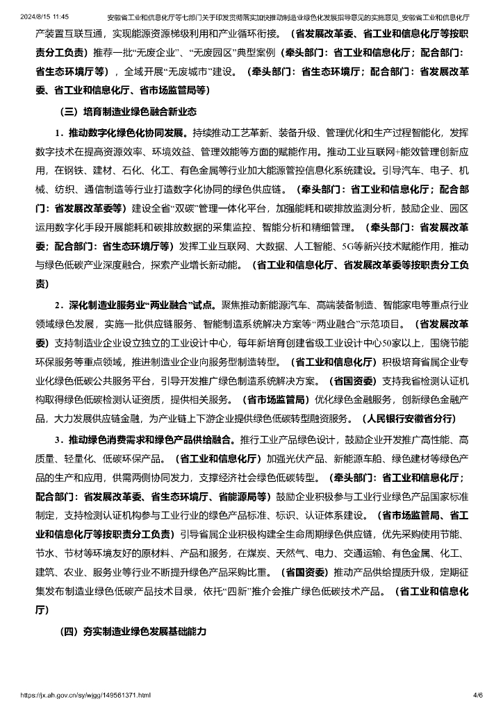 安徽省工业和信息化厅:贯彻落实加快推动制造业绿色化发展指导意见的实施意见.pdf