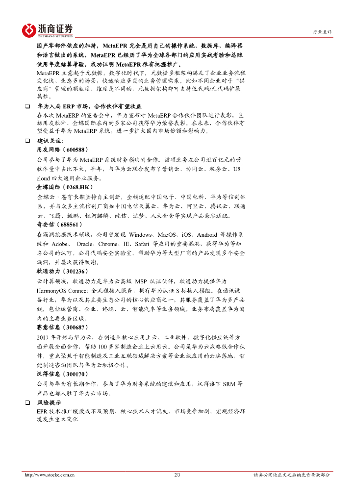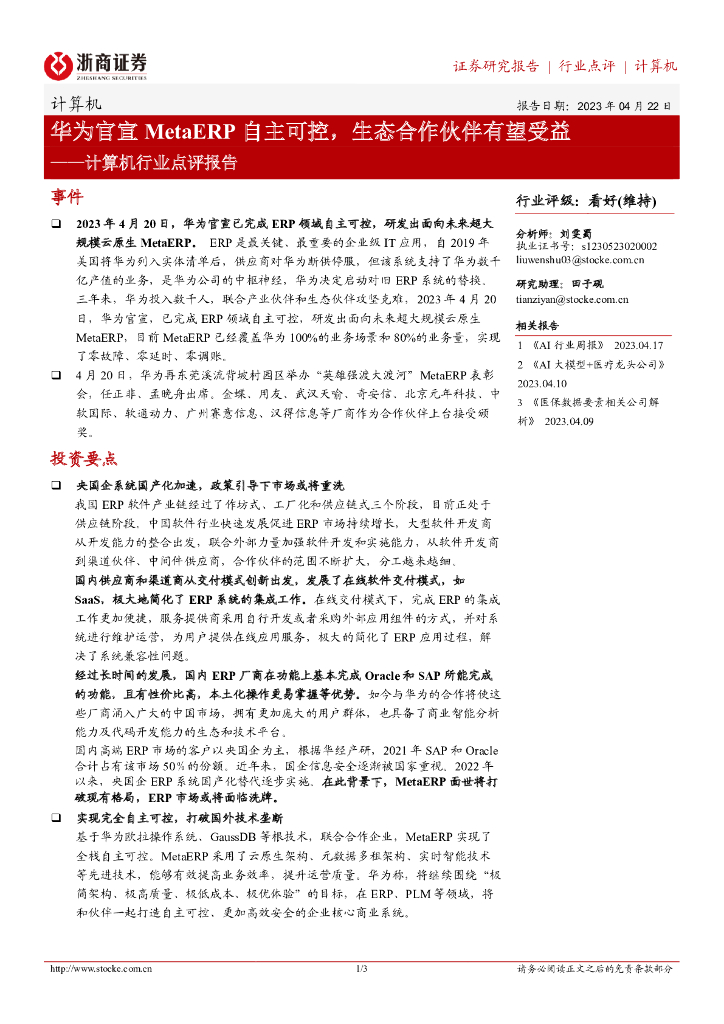 浙商证券:计算机行业点评报告:华为官宣MetaERP自主可控,生态合作伙伴有望受益.pdf