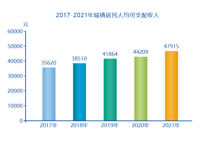 全年城镇居民人均可支配收入47915元,比上年增长8.4%。农村居民人均可支配收入21979元,增长10.2%。