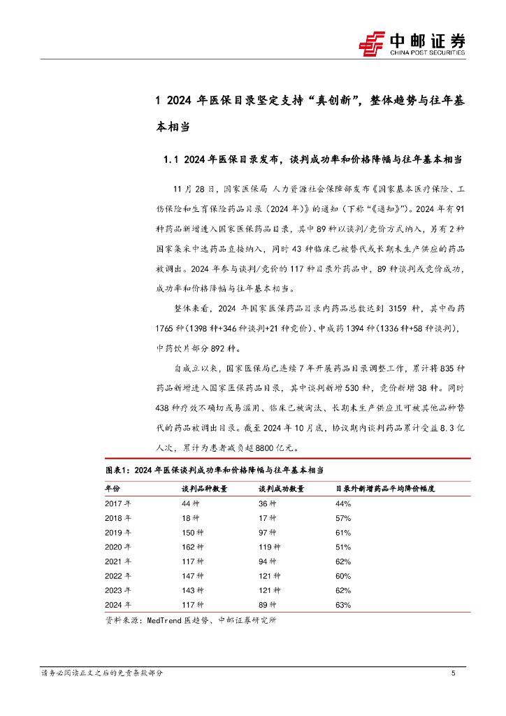 中邮证券:医药生物:2024年医保目录坚定支持“真创新”,新进医保目录创新药有望充分受益.pdf