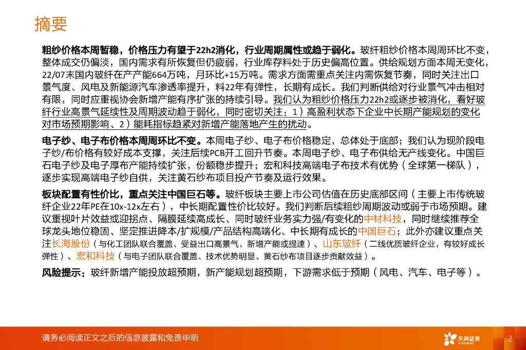 天风证券:玻纤周跟踪:粗纱、电子纱价格本周均稳定.pdf