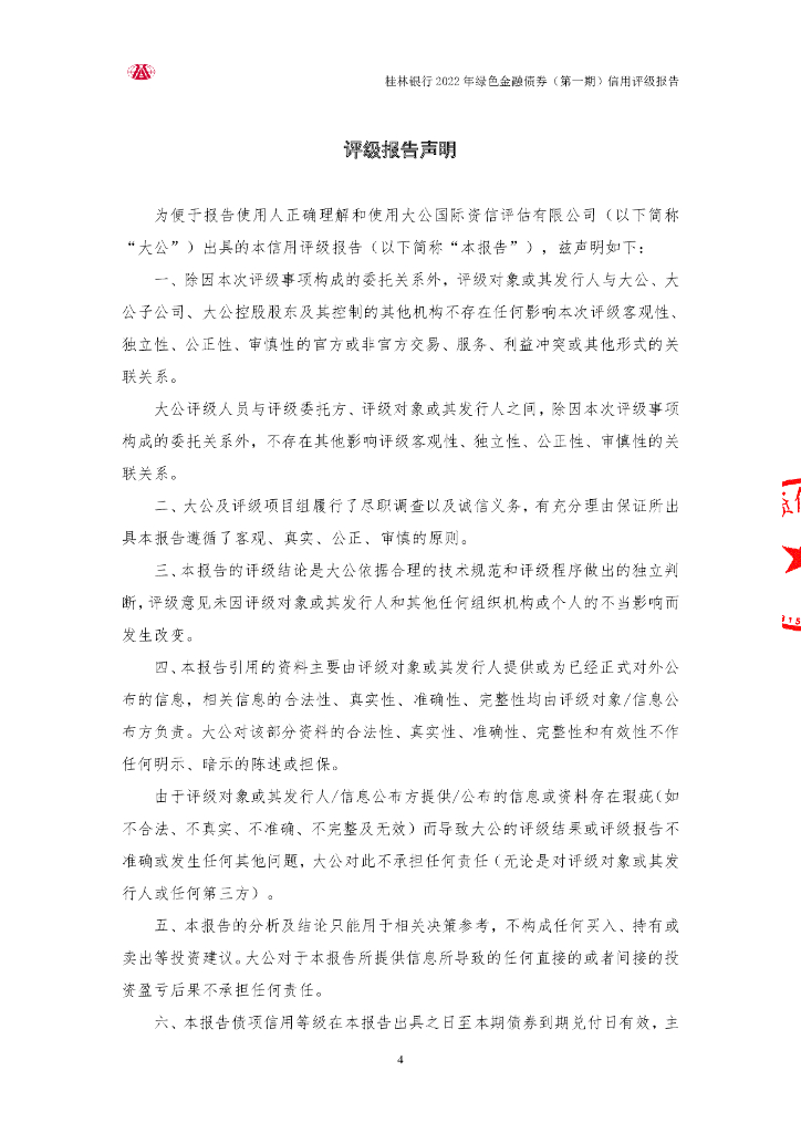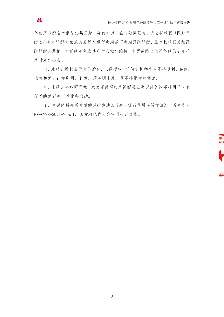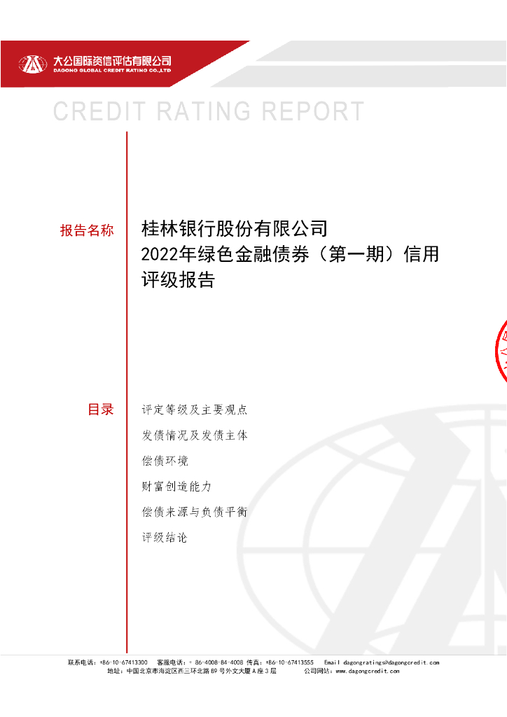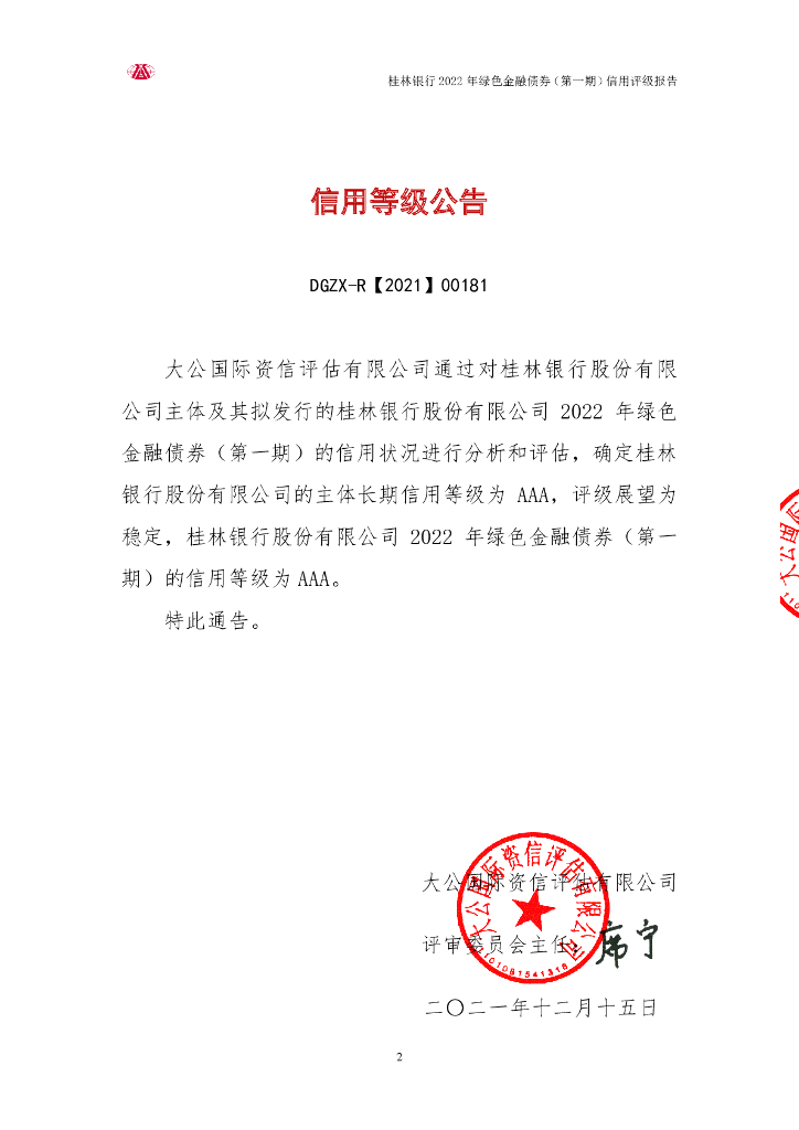 大公:桂林银行股份有限公司2022年绿色金融债券(第一期)信用评级报告及跟踪评级安排说明.pdf