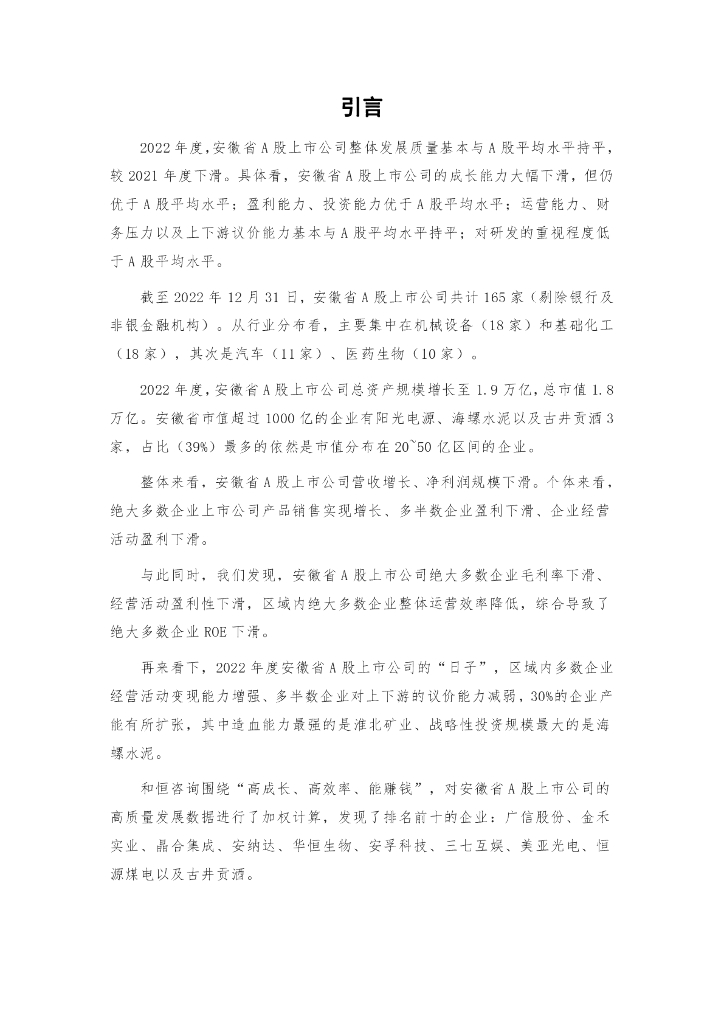 和恒咨询:安徽省A股上市公司高质量发展报告(2022年报).pdf
