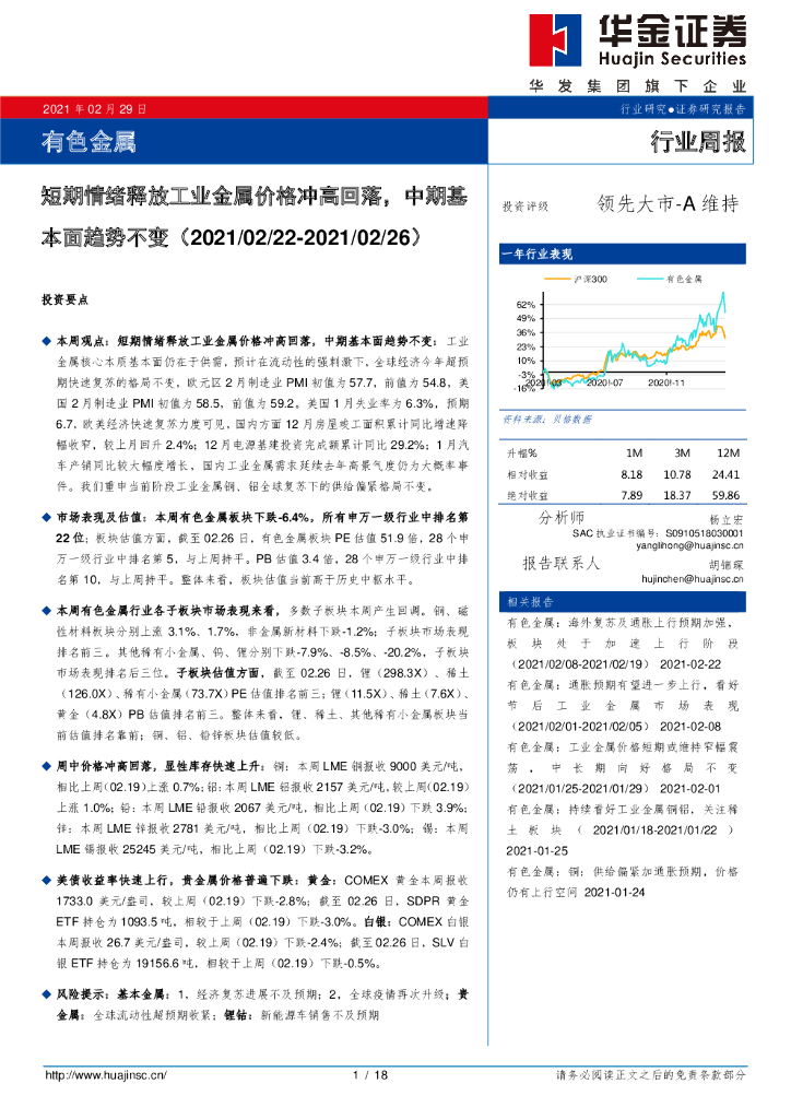 华金证券:有色金属行业周报:短期情绪释放工业金属价格冲高回落,中期基本面趋势不变.pdf