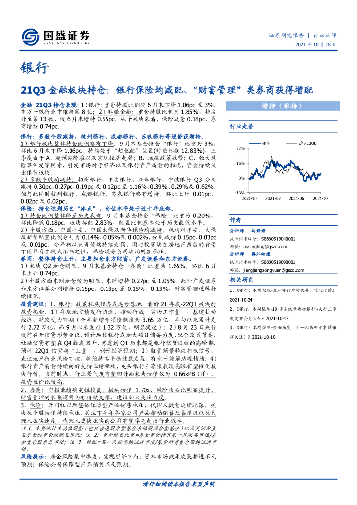 国盛证券:银行21Q3金融板块持仓:银行保险均减配、“财富管理”类券商获得增配.pdf