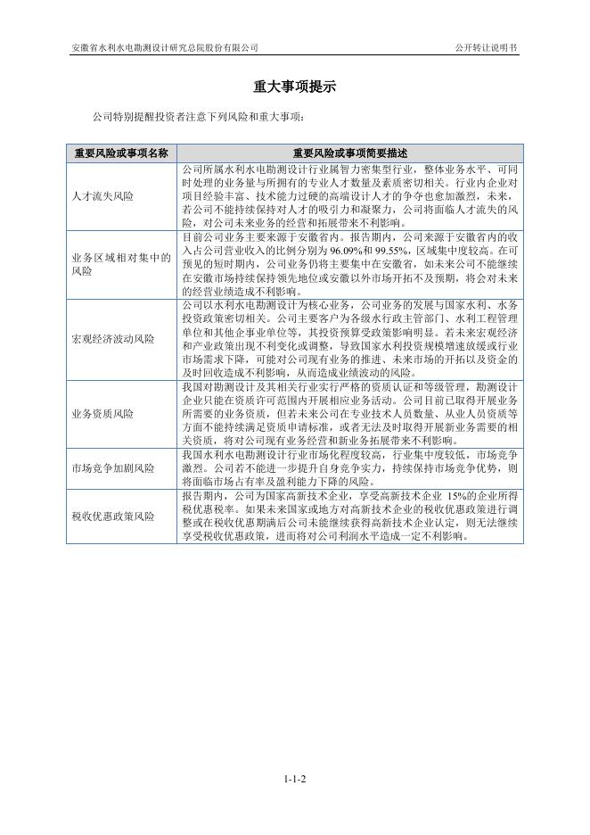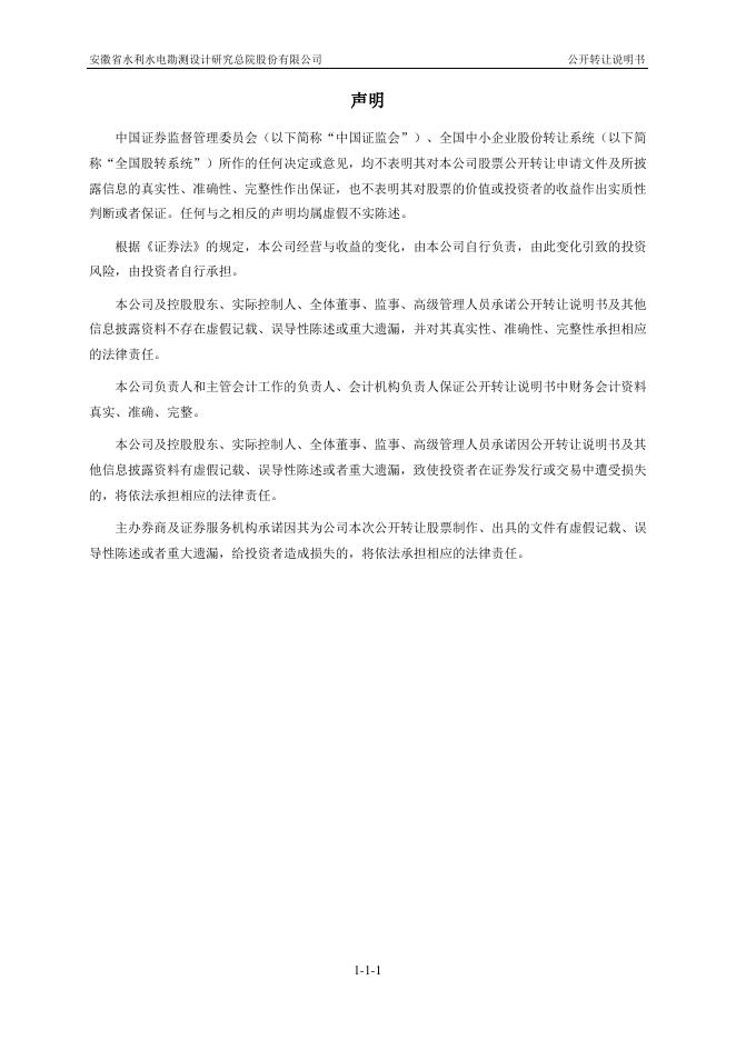 安徽省水利水电勘测设计研究总院股份有限公司新三板挂牌公开转让说明书(申报稿).pdf