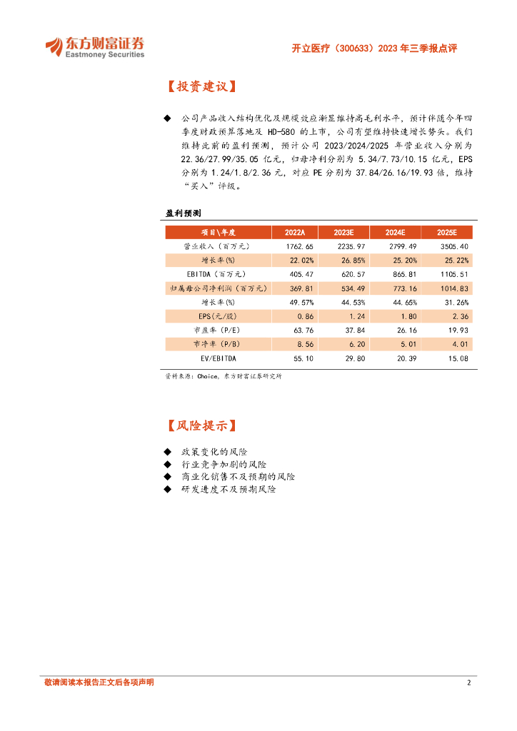 东方财富证券:开立医疗(300633)-2023年三季报点评:高端产品放量优化收入结构,规模效应维持高毛利.pdf