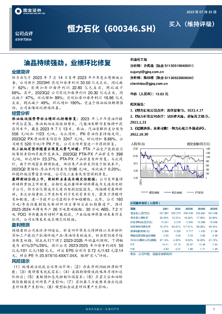 国金证券:恒力石化(600346)-油品持续强劲,业绩环比修复.pdf
