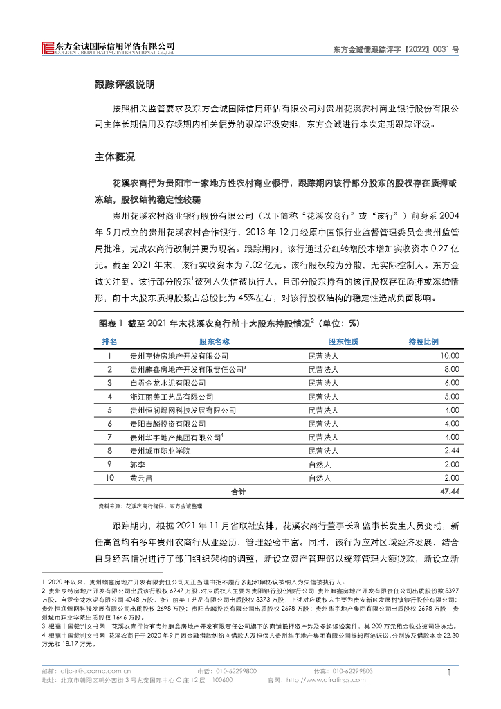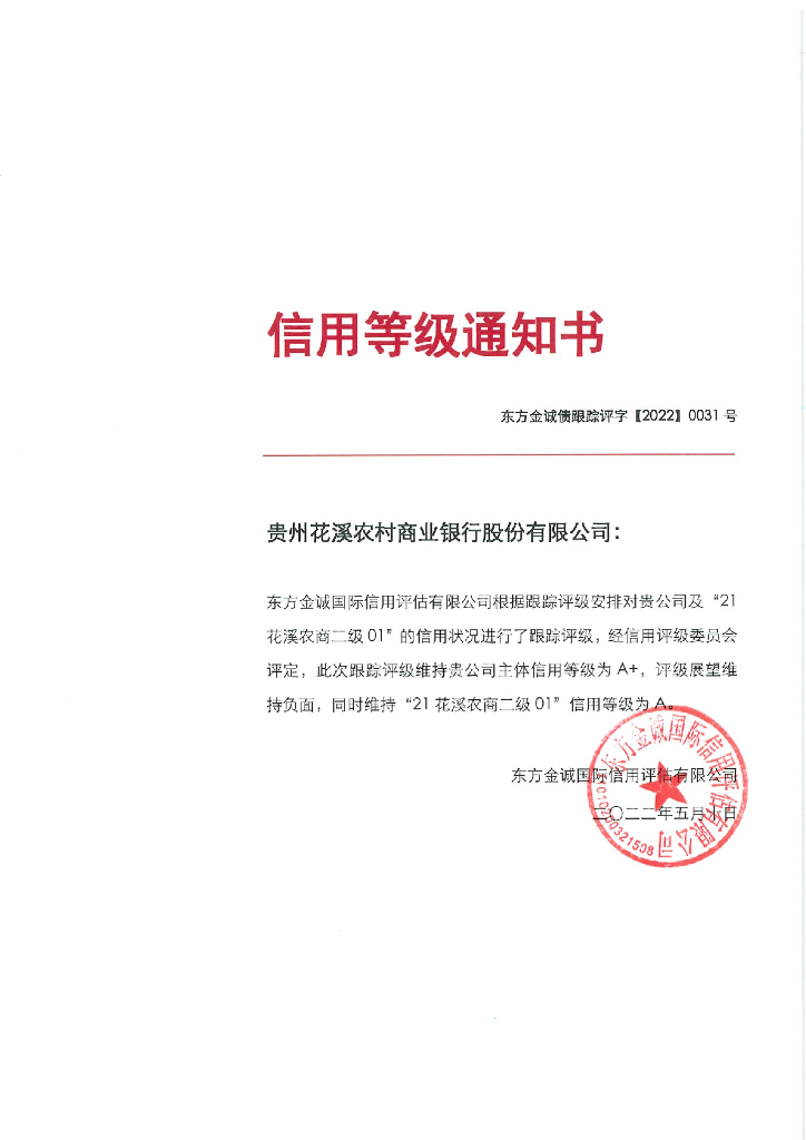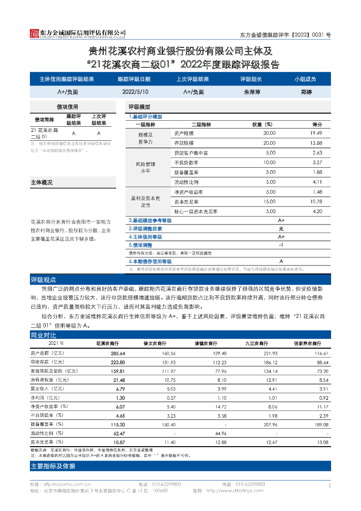 东方金诚:贵州花溪农村商业银行股份有限公司主体 及“21花溪农商二级01”2022年度跟踪评级报告 .pdf