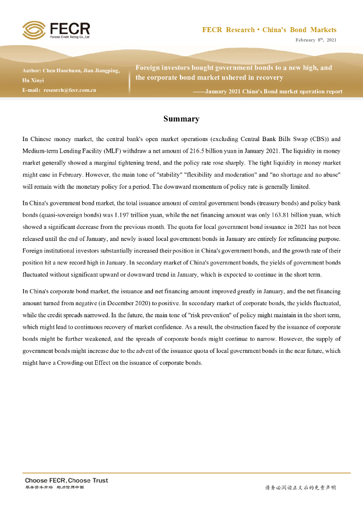 远东资信:2021年1月债券市场运行报告:外资加仓利率债又创新高,信用债市场迎来修复.pdf