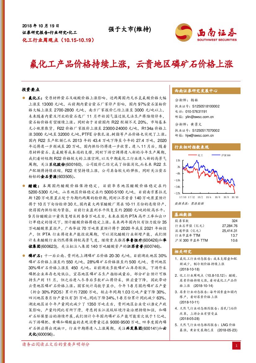西南证券:化工行业周观点:氟化工产品价格持续上涨,云贵地区磷矿石价格上涨.pdf