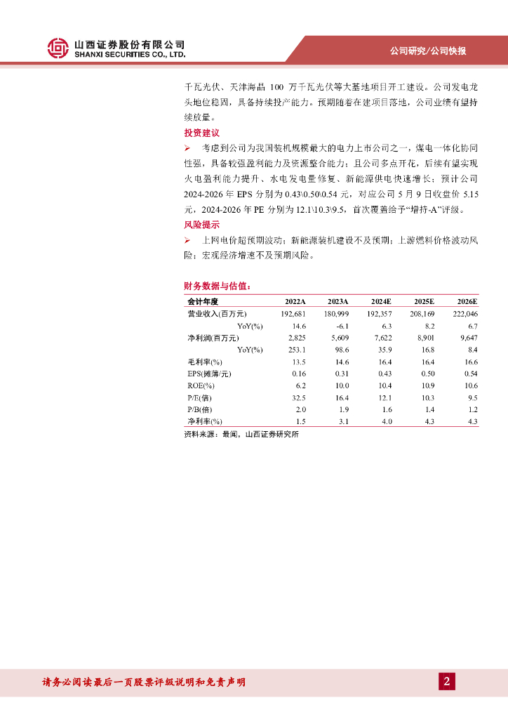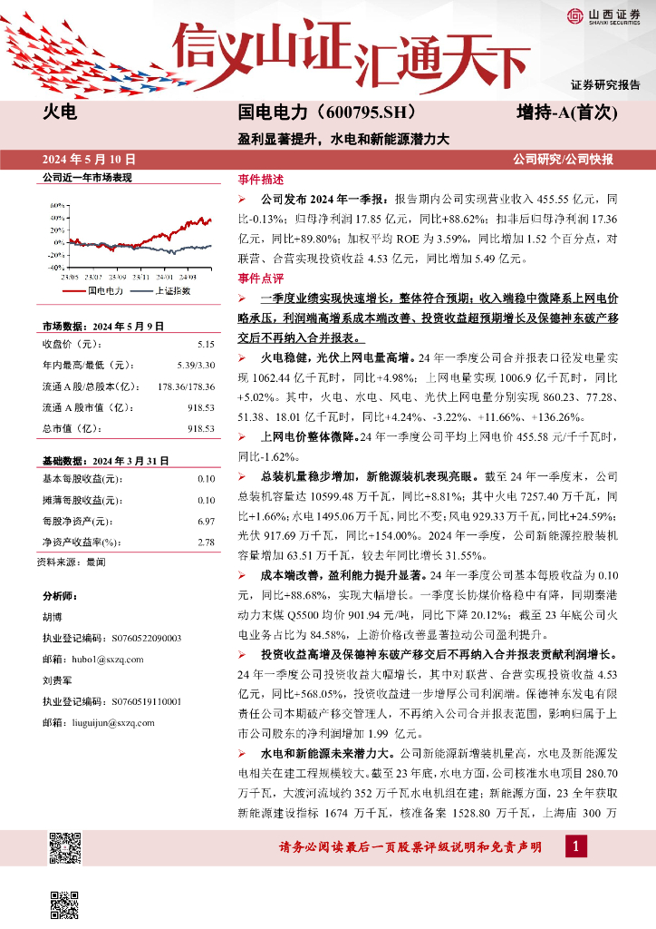 山西证券:国电电力(600795)-盈利显著提升,水电和新能源潜力大.pdf
