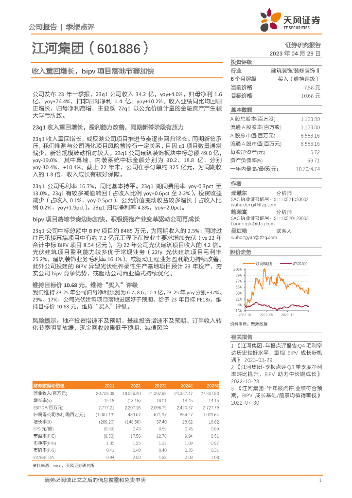 天风证券:江河集团(601886)-收入重回增长,bipv项目落地节奏加快.pdf