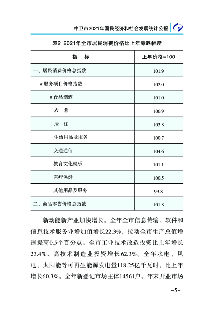 中卫市2021年国民经济和社会发展统计公报.pdf