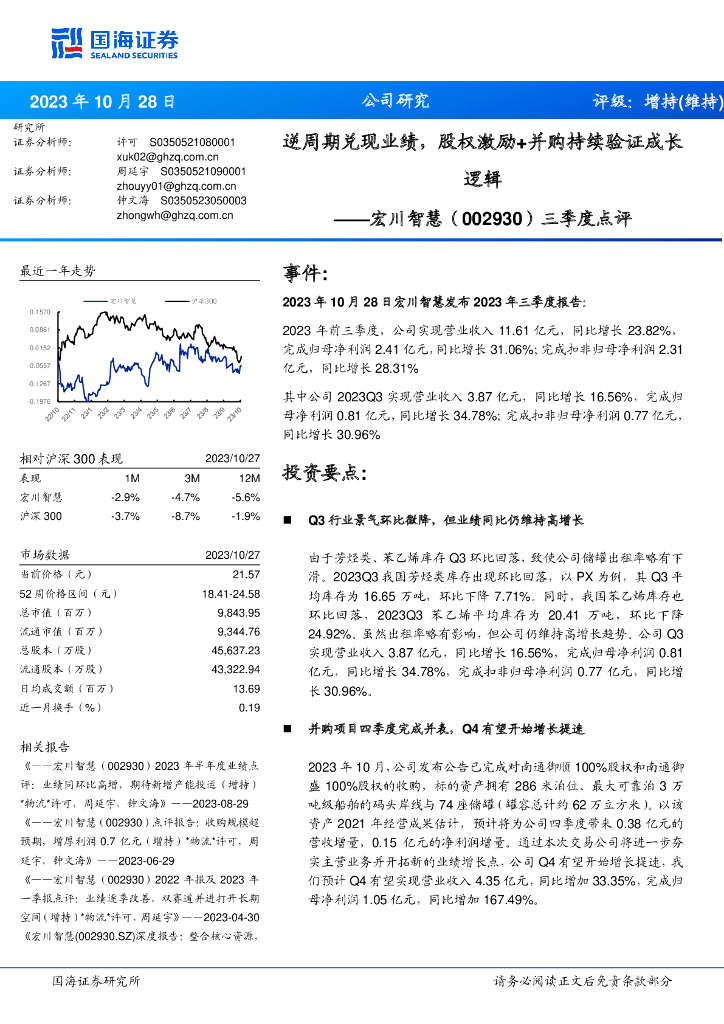 国海证券:宏川智慧(002930)-三季度点评:逆周期兑现业绩,股权激励+并购持续验证成长逻辑.pdf