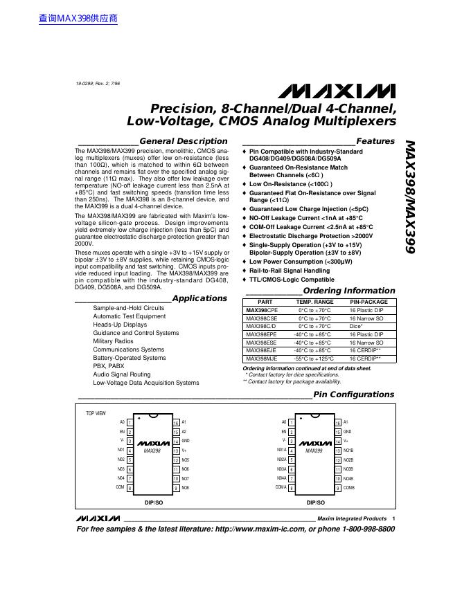 MAXIM MAX398/MAX399 数据手册(1).pdf
