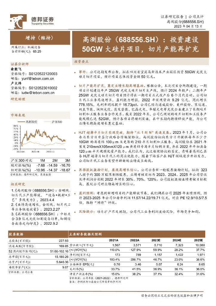 德邦证券:高测股份(688556)-投资建设50GW大硅片项目,切片产能再扩充.pdf