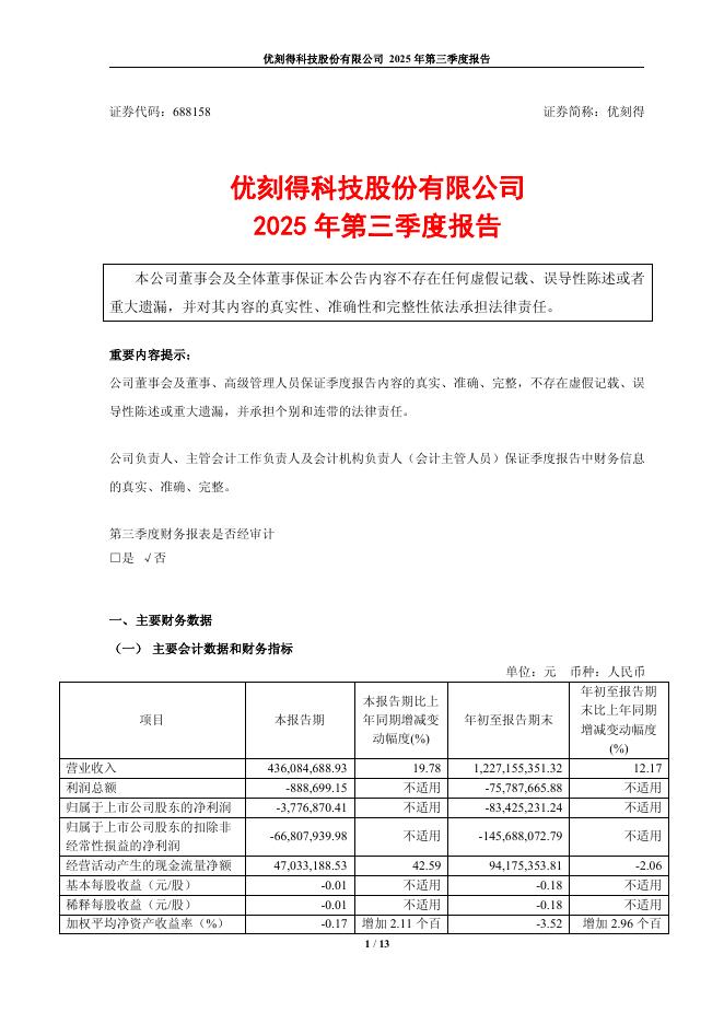 688158-优刻得:优刻得2025年第三季度报告.pdf