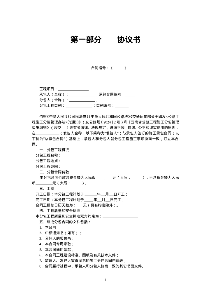 云南省公路工程施工分包合同示范文本(2024年版)(征求意见稿).doc
