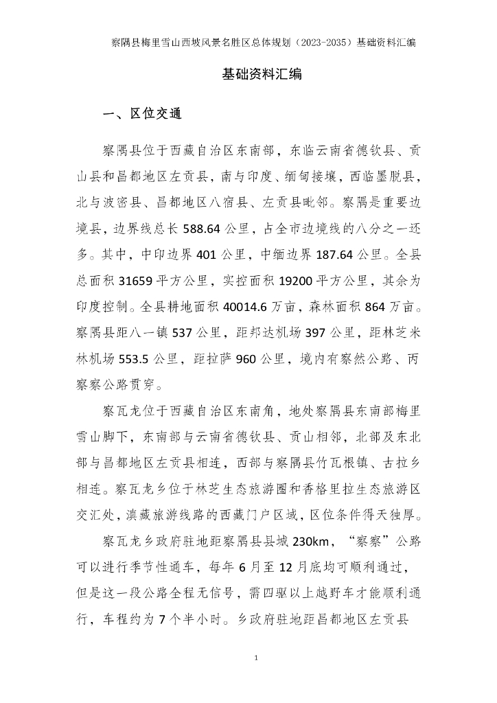 察隅县梅里雪山西坡风景名胜区总体规划(2023‐2035年)基础资料汇编.pdf