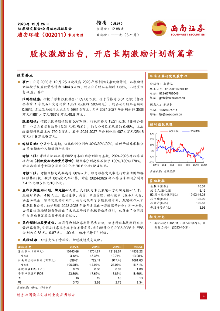西南证券:盾安环境(002011)-股权激励出台,开启长期激励计划新篇章.pdf