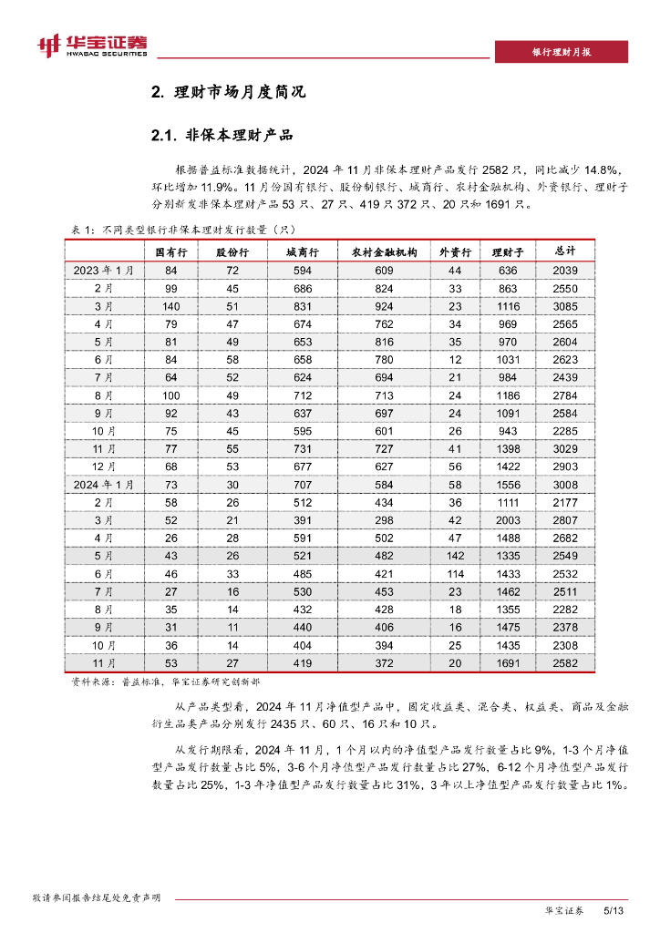 华宝证券:2024年11月银行理财市场月报:响应金融“五篇大文章”,慈善理财发行增多.pdf